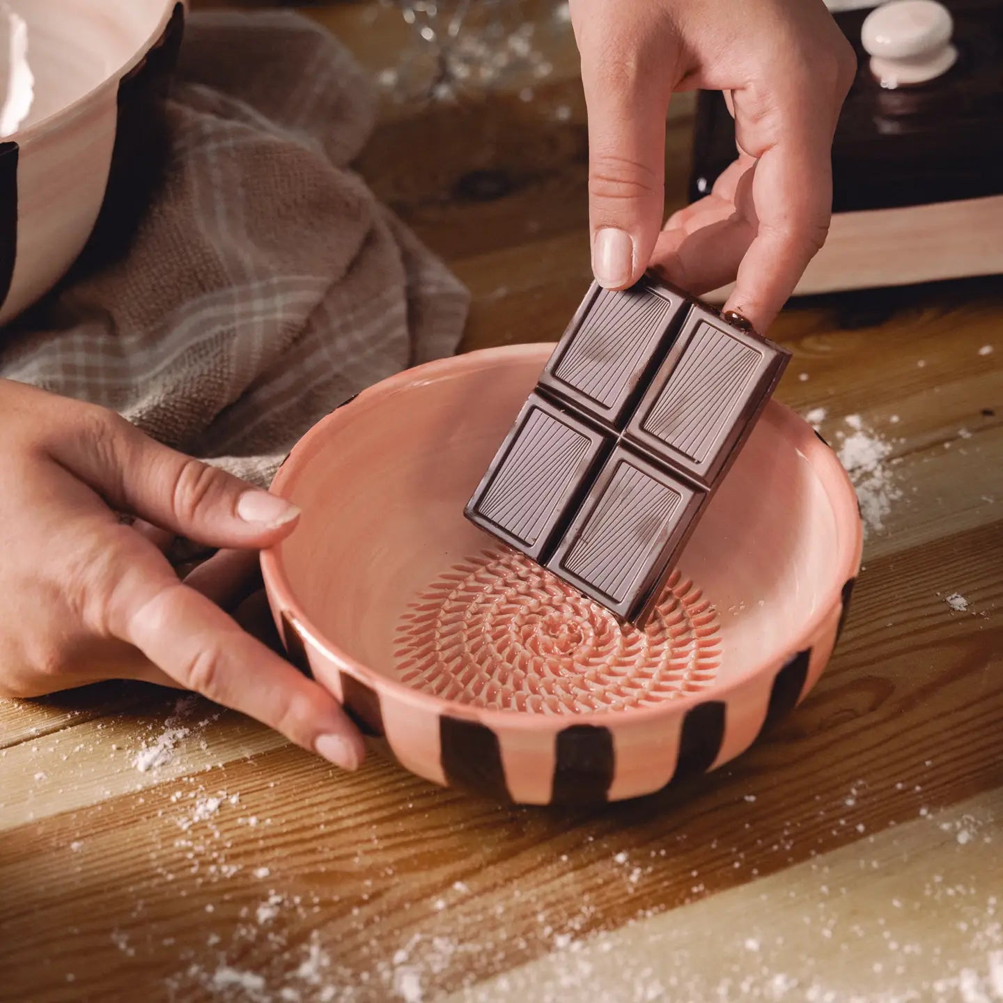 Cuenco Rallador Mediano - Rosa y rayas marrones