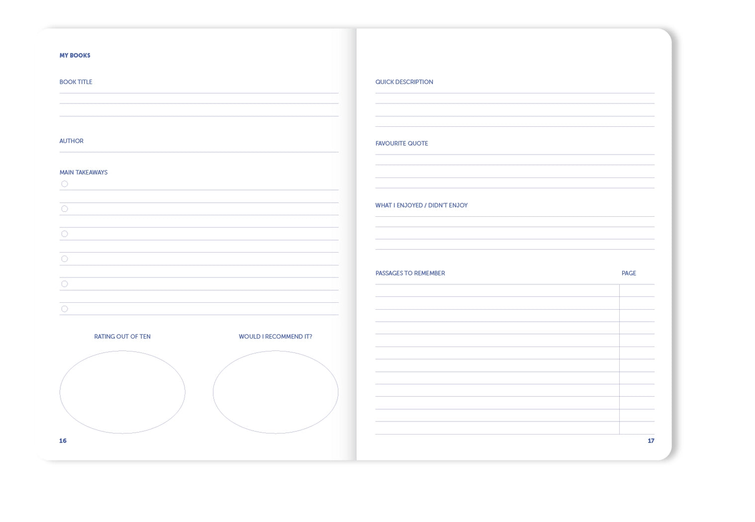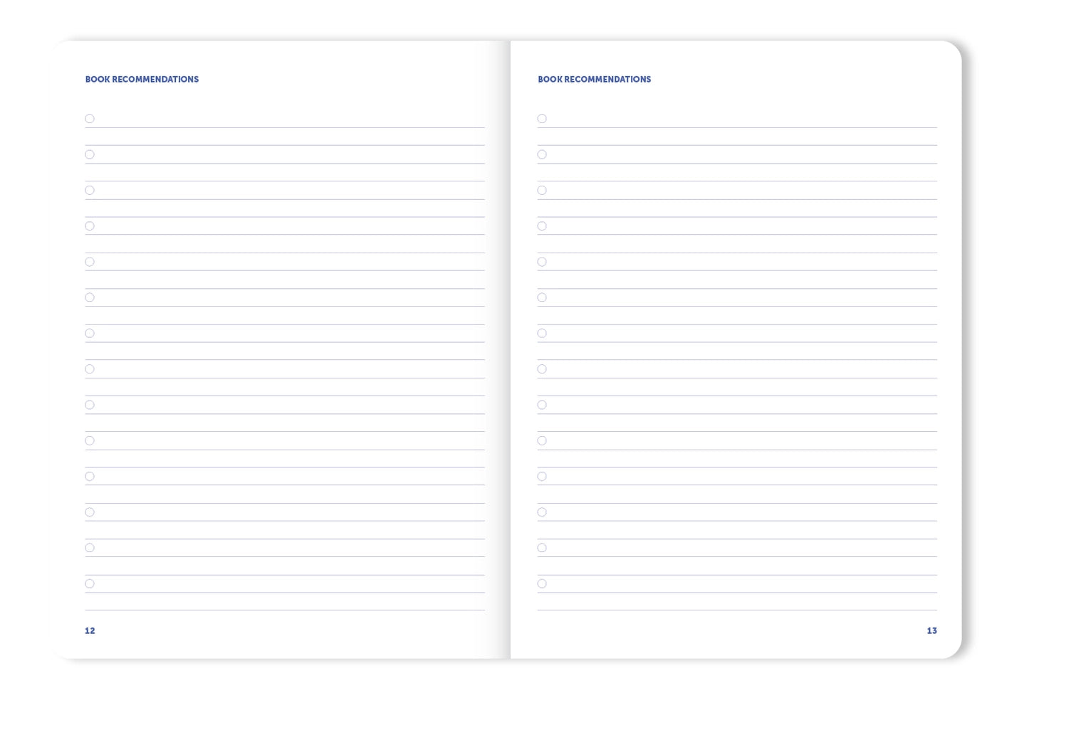 Recordar todos los libros que te has leído puede resultar complicado. El diario de lectura está concebido para que tomes notas de tus libros favoritos y apuntes lo que más te ha gustado, si lo recomendarías, una breve descripción, etc. En definitiva es un diario al que puedes volver en cualquier momento para refrescar la memoria con algunas palabras inspiradoras.