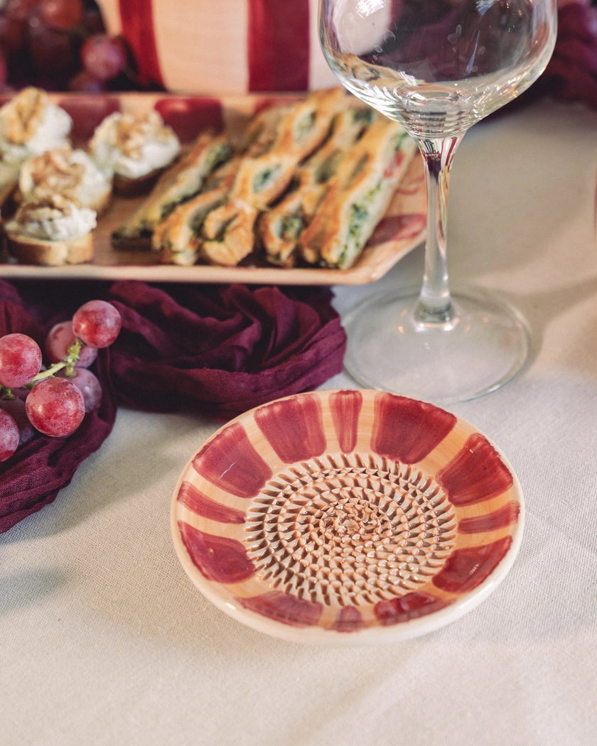 Alfar Tierra Cocida. El plato rallador de cerámica es ideal para rallar ajo o nuez moscada para el aliño de la ensalada, jengibre para un té o chocolate para un postre. Su tamaño compacto es perfecto para preparar ingredientes en pequeñas cantidades. Al estar hecho de cerámica no oxida los alimentos y conserva mejor sus propiedades, esto lo convierte en una herramienta de cocina indispensable para quienes desean preparar recetas saludables.