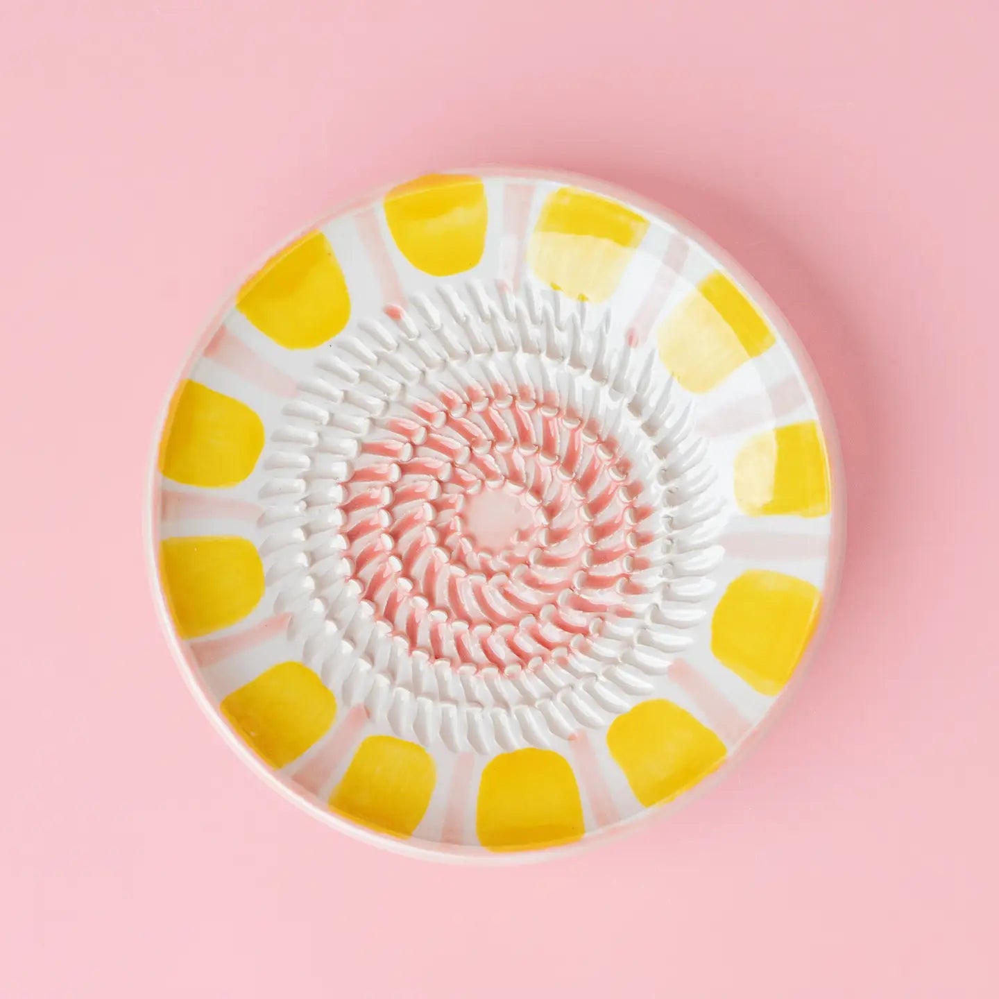 Alfar Tierra Cocida. El plato rallador de cerámica es ideal para rallar ajo o nuez moscada para el aliño de la ensalada, jengibre para un té o chocolate para un postre. Su tamaño compacto es perfecto para preparar ingredientes en pequeñas cantidades. Al estar hecho de cerámica no oxida los alimentos y conserva mejor sus propiedades, esto lo convierte en una herramienta de cocina indispensable para quienes desean preparar recetas saludables.