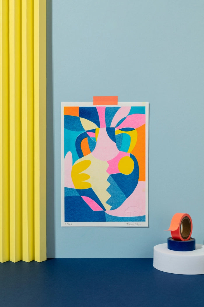 Vibrante danza de formas abstractas que dibujan un jarrón.