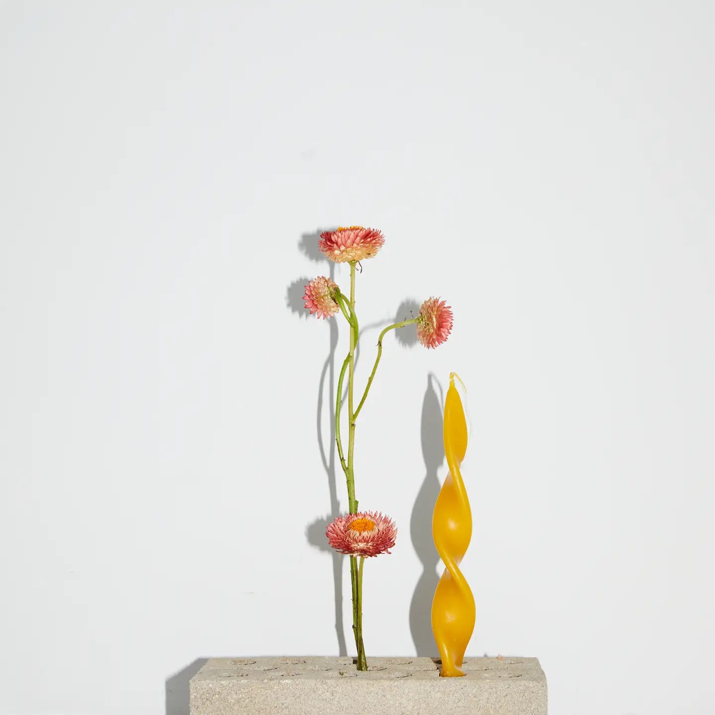 Nuestro proceso de fabricación es completamente artesanal, lo que significa que cada vela es única. Desde el vertido de la cera hasta la mezcla de pigmentos naturales, todo el proceso se hace de forma manual. Debido a esta atención meticulosa, los colores y formas pueden variar sutilmente, asegurando que cada vela sea verdaderamente especial.